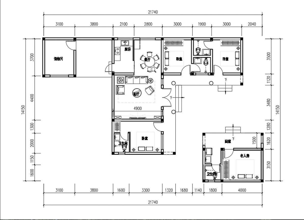 中式--1层(占地面积120平)