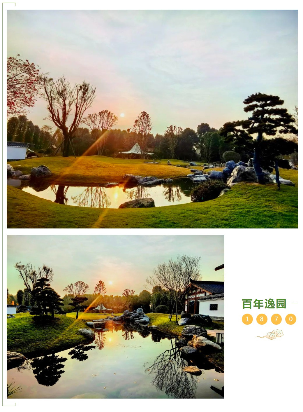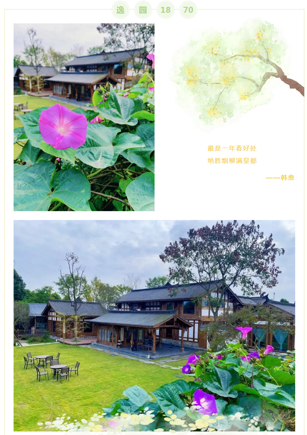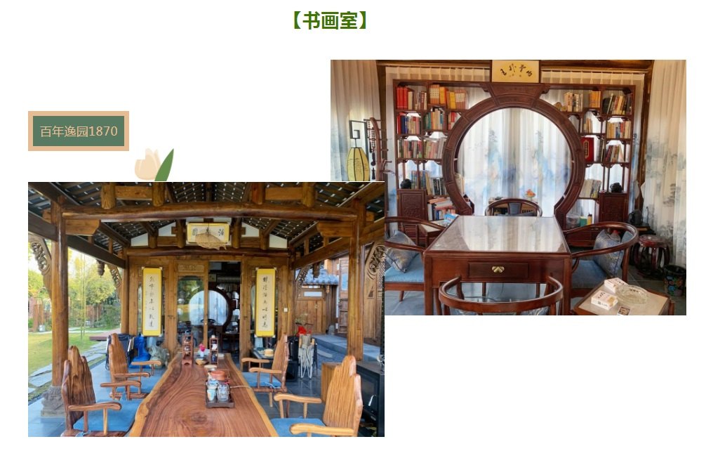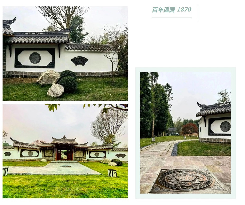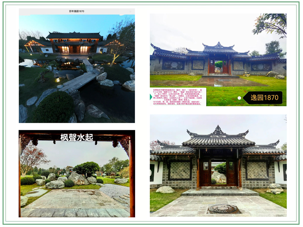 “逸园1870”创始人属羊,逸为兔,亥卯未,三合局。打造园林国学吉祥文化,倡导劳逸结合,营造舒适工作环境,渲染雅致生活氛围。因古建筑主体为木结构,原建筑在江西,建于同治九年1870年,距今153年,于2023年异地整体搬迁进入来吧田园,原貌复建,保持原有建筑风貌,故取名“逸园1870”。